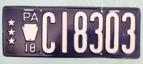 1918 PENNSYLVANIA TRUCK LICENSE PLATE FOR THREE TON TRUCK INV 251150087
